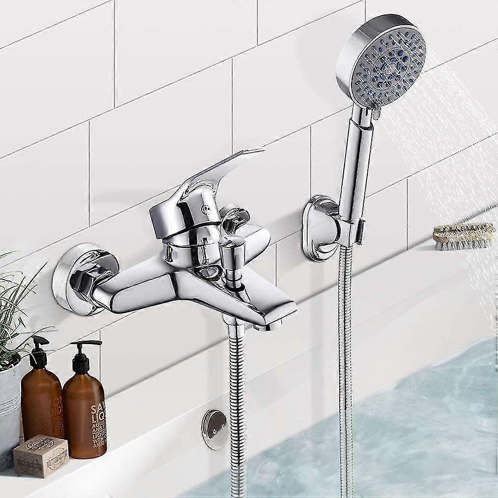 5 spray modes: the hand shower; hand has 5 different spray modes, which can be adjusted by turning the disc. It can go from a stronger water flow to a gentler massage water flow to meet your needs. your different needs.Good quality; : the bath tap is in chromed brass; and the shower tray grave; hand is made of ABS plastic. Exquisite workmanship, fine workmanship, glossy surface.Easy to clean. to use: you can easily switch between the hand shower and the hand and the bathtub faucet by pulling the button. The water tap single handle can adjust water flow and temperature easily and comfortably. a wall installation on the bathtub and has a classic style. The multi-layered chrome plating retains its shine for many years.Excellent value for money: This bathtub faucet is very easy to clean. mount and presents an unbeatable quality/price ratio. The delivery includes all necessary parts. If you have any questions, do not hesitate to contact us. contact us.Product Product Information:Thermostat: No.Body Material: BrassSurface: Chrome/smooth surfaceInstallation method: wall-mountedConnection thread: G Cartridge diameter: 35 mmHand shower; hand: 5 spray modesHand shower hand: 150cm; 1/2 inchMinimum water pressure: 0.5 barMaximum water pressure: 8 bar (1 bar = 0.1 Mpa)Bath faucet in shiny chrome, classic and timeless designThe bath faucet set is a high quality product. with mature technology.Timeless classic design, harmoniously integrated in every bathroom style.Comfortable use one hand offers greater freedom; of movement.The button with integrated switch; allows easy switching between shower or tub.Includes high quality silver shower hose; with a standard inch.For daily maintenance, we recommend using a soft, non-irritating sponge or cloth.If the shower is a little dirty, you can wash it with household vinegar. swim or soapy water, then buff it with a soft cloth.Read MoreRead MoreHigh QualityHandle is not plastic, but metal.The spare parts are chrome plated, so they have a perfect shine and better resistance to corrosion. rust and wear.Mark Verification CartridgeThis blender has a a handle is popular because of its smooth operation.The ceramic filter element in the body of the accessory can precisely control the volume and temperature. water absorption.Scope of delivery:1 hand shower1 x shower connection1 x shower holder1 x shower hose in metal 150 cm tallAssembly accessories1 x assembly instructionsRead moreRead more