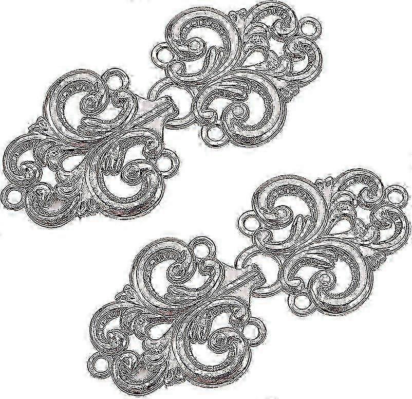 Cloak Clasp Fasteners, 2 Pairs Swirl Flower Cape Fasteners Sew On Hooks and Cardigan Clip