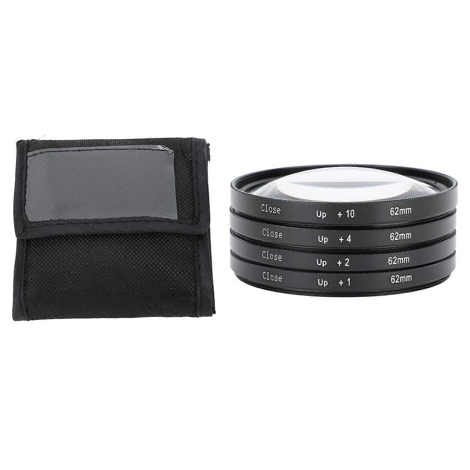 Close Up Filter Kit 4 in 1 +1 +2 +4 +10 Macro Lens Filter Optical Glass with Storage Pouch Camera Filter for Digital Camera Photo 62mm