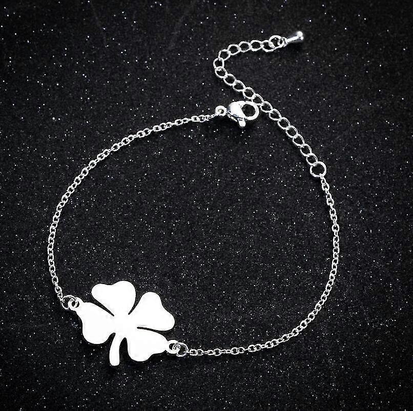 Silver-bracelet Woman Symbol Of The Clover Brings Luck In