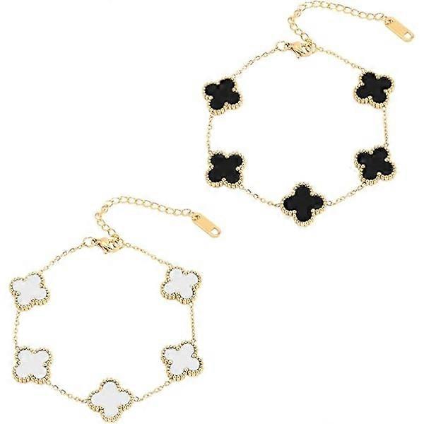 Clover bracelet gold, 2 pcs Van Cleef bracelet, simple design four-leaf clover bracelet for girls and ladies, lucky bracelet (black+white)