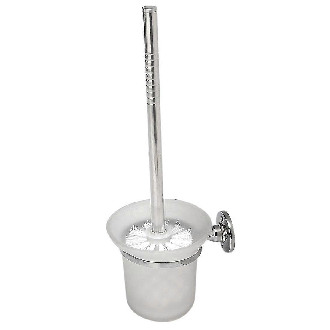 Chrome Round Wall Mounted Toilet Brush and Frosted Glass Toilet Brush Holder