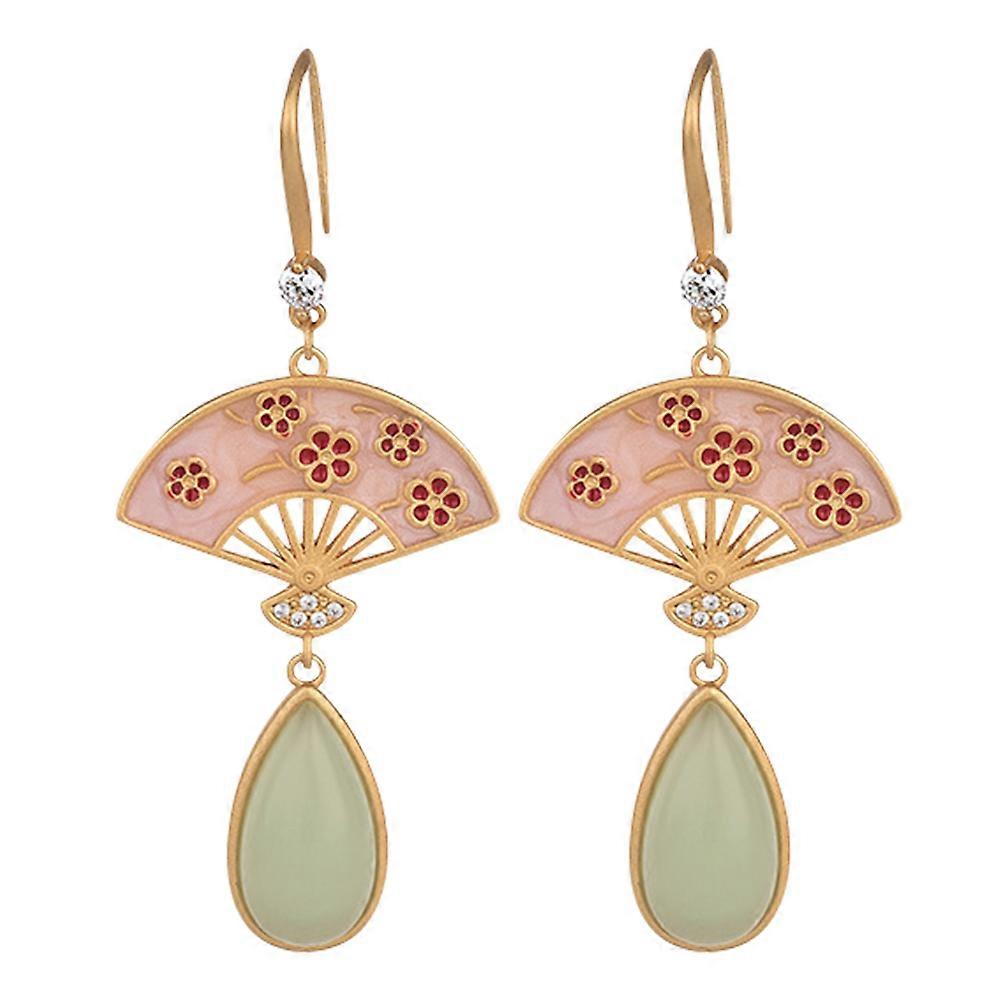 Cool Earrings Fan Shape Earrings Delicate Jade Ear Drop For Women Lady Chinese Style .6X2.5X0.3CM Ear Decor 1 Pair
