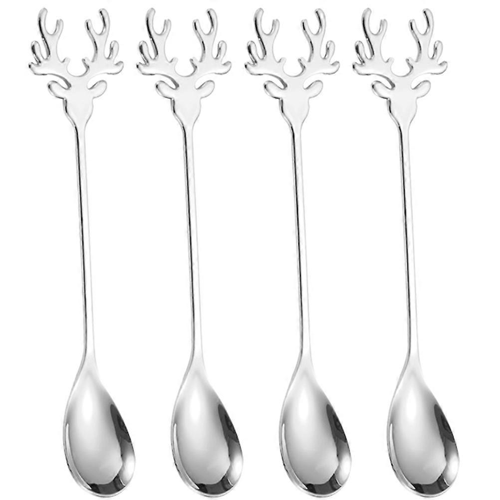 Cool Table Spoon Sturdy 304 Stainless Steel Cartoon Elk Spoons 4Pcs