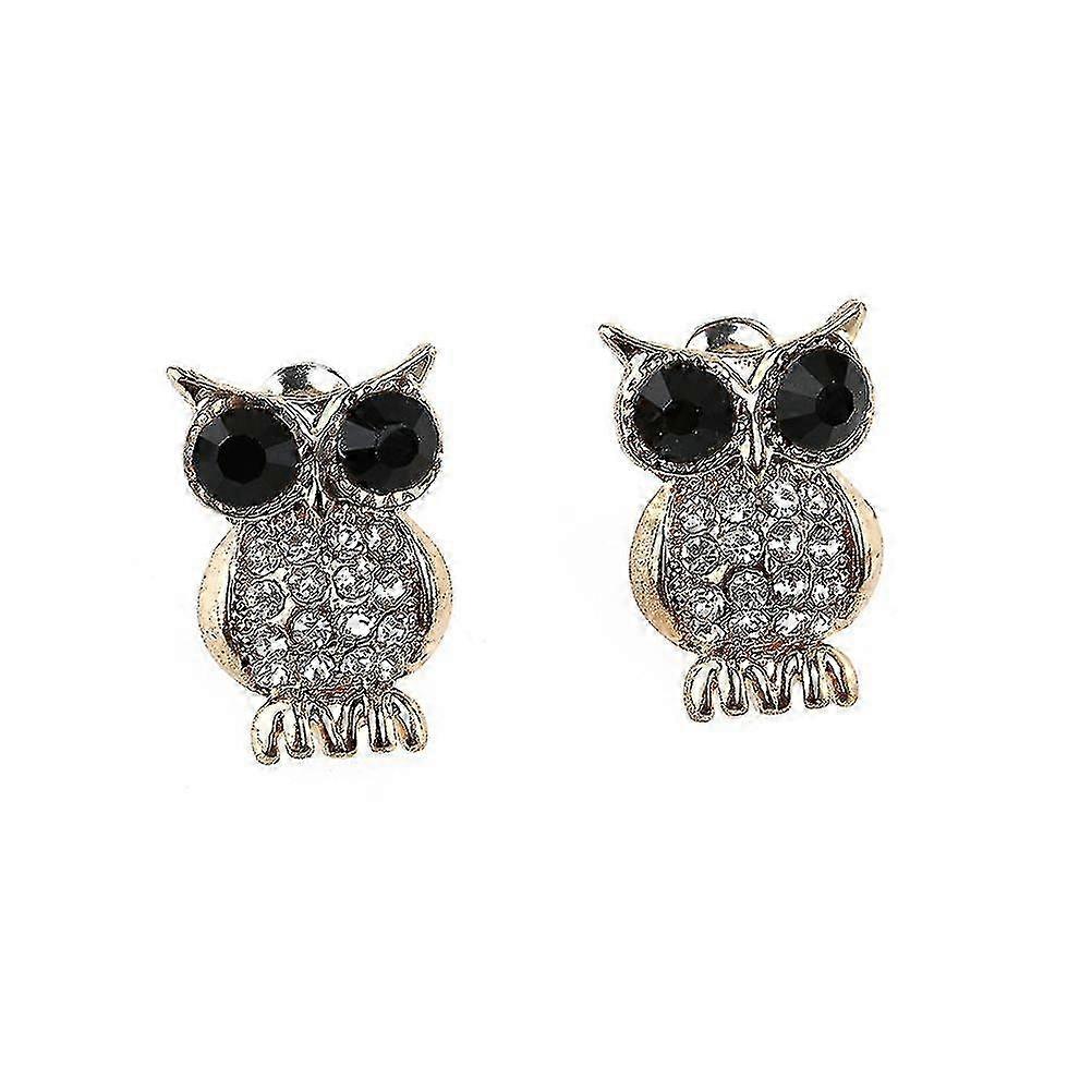 Cool Sparkling Rhinestones Decor Women's Owl Earrings Ear Pendants - 2 pairs/set (Golden)