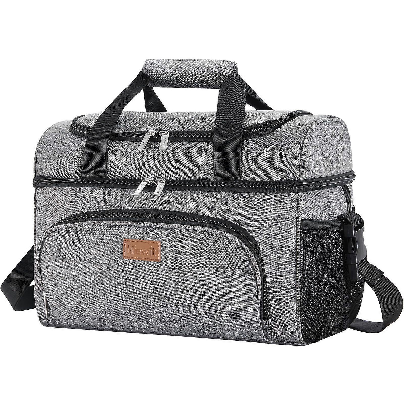 Cool Bag Large Foldable Cooler Bag Insulated Double Decker for Sports Picnic Fitness 23L Grey Color