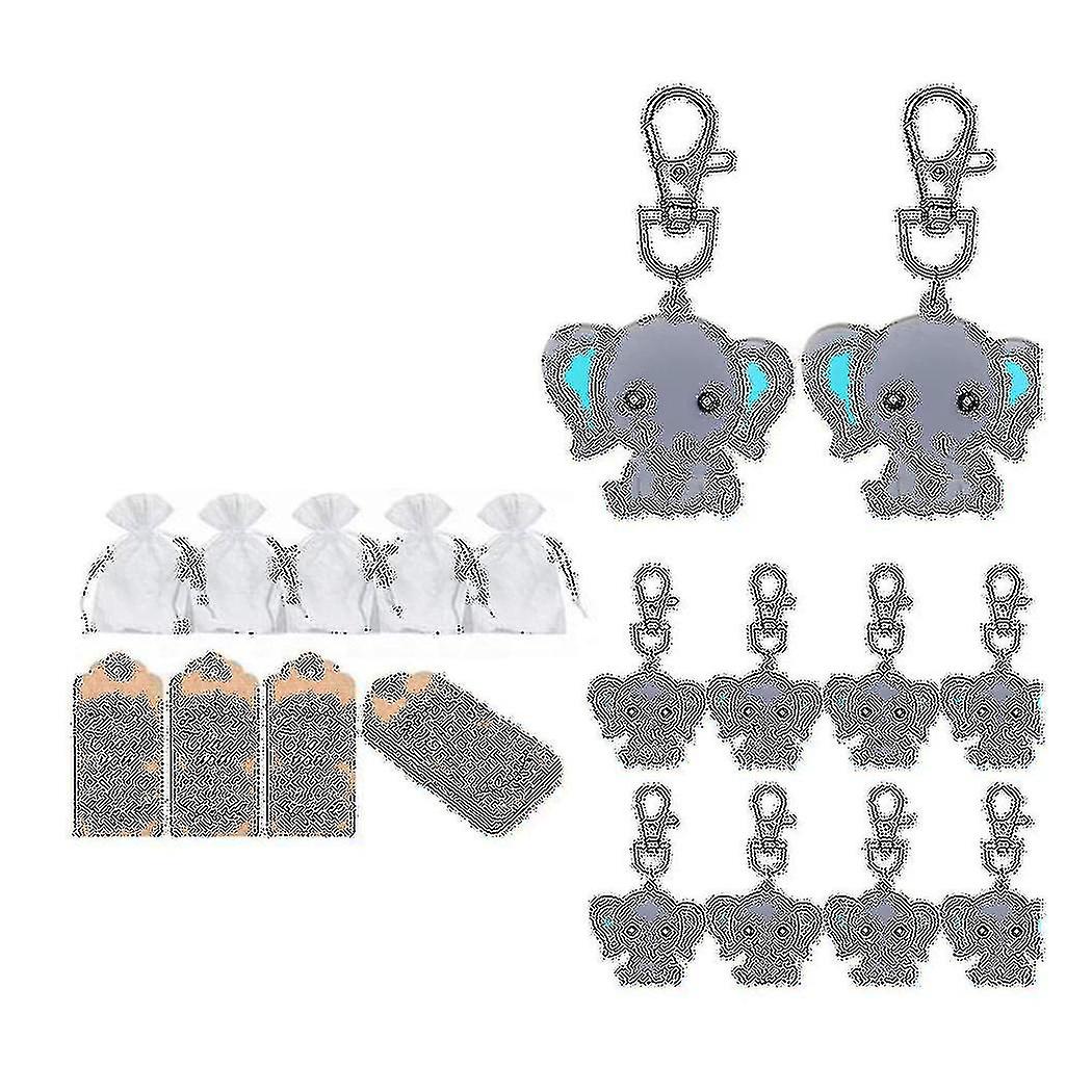 20 Pcs Baby Shower Return Favors For Guests Blue Baby Elephant Keychains Organza Bags Kraft Tags El