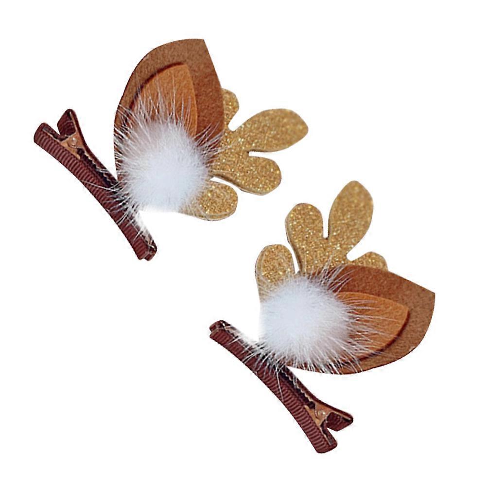 Cute Antler Hairpins For Children Designed For Games And Parties With Plush Material In Golden Shade 1 Pair