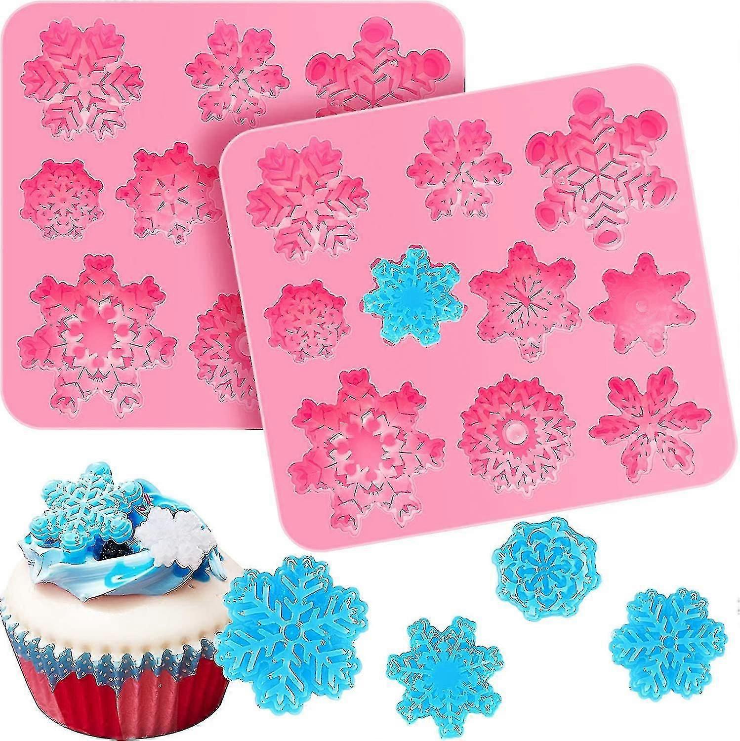2 Pieces 3d Snowflake Fondant Mold Christmas Snowflake Silicone Mold For Cake Cupcake Decoration Polymer Clay Crafting Projects (pink)