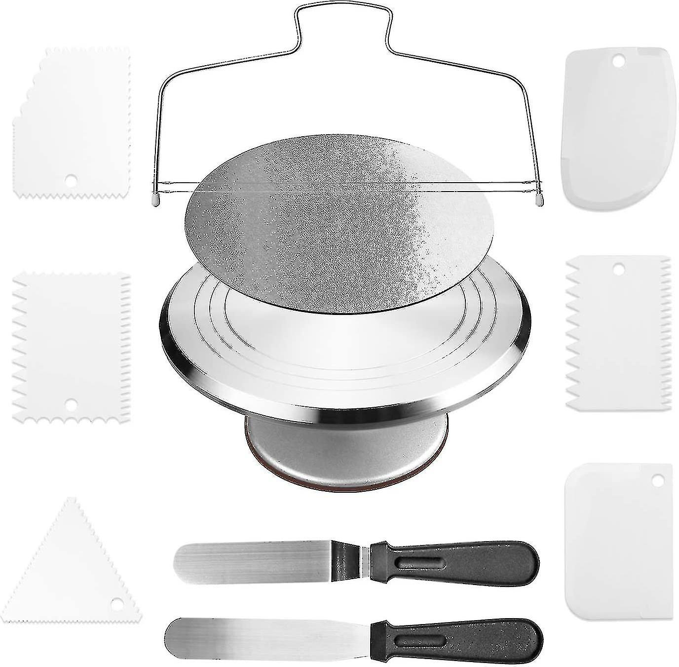 Cake Decorating Supplies Cake Stand Aluminium Revolving Cake Turntable - 12'' Rotating Cake Decorating Stand With 2 Angled Icing Spatulas And 6 Comb I