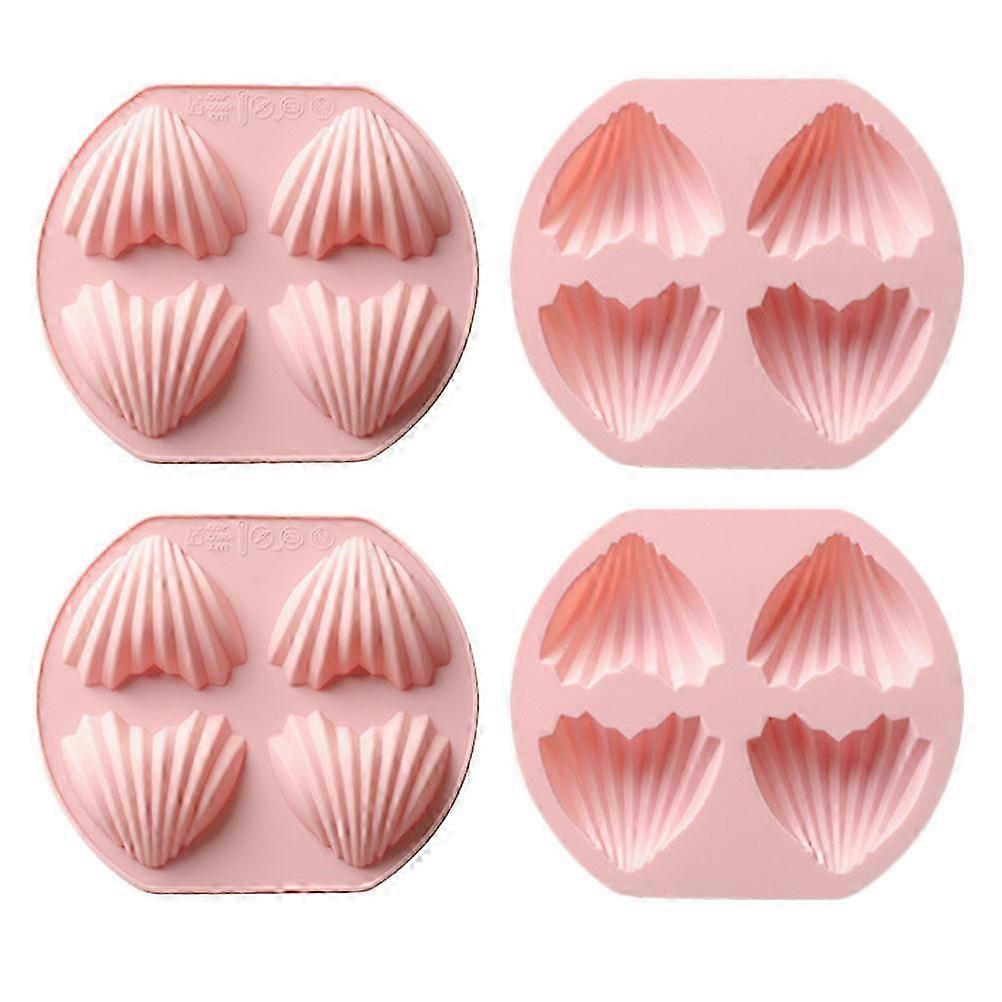 4pcs Heart Silicone Baking Molds for Cake Madeleine 14.6x12.7cm Pink