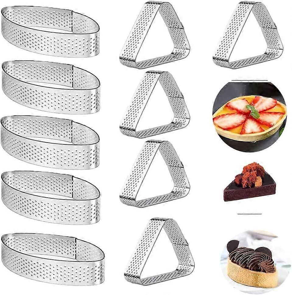 Cake Ring Boat Shape & Triple-Cornered Stainless Steel Tart Ring Tower Cake Mould Perforated Cake Mousse Ring