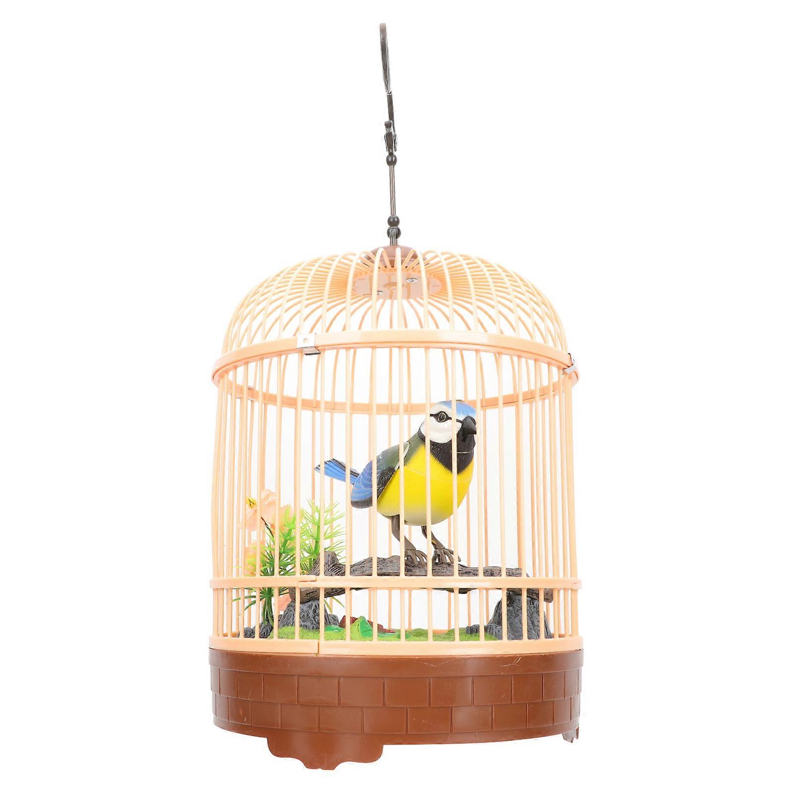 Singing Chirping Bird in Cage Toy Electric Acoustic Interactive Play Children Parents 36x18cm Blue and Yellow 1Set