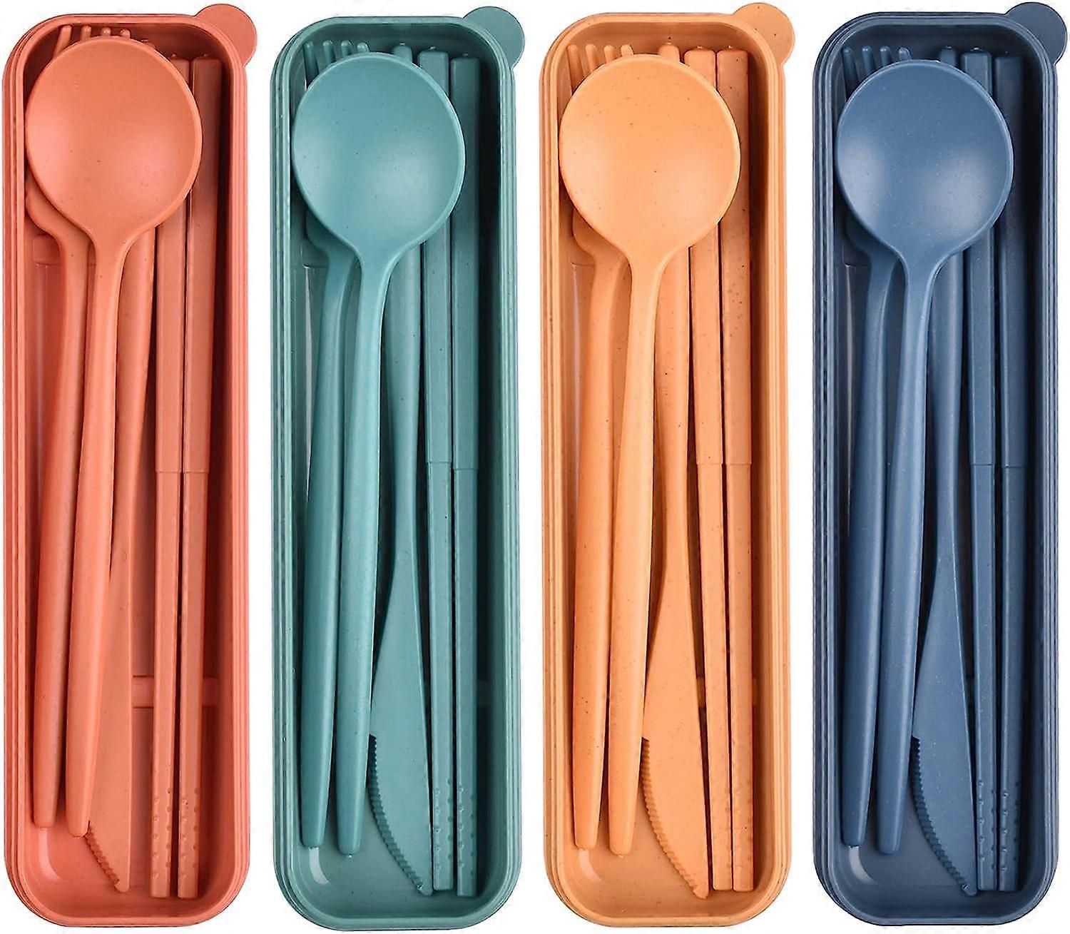 Travel Cutlery Set with Case, Plastic Cutlery Set Reusable, Portable Cutlery Set for Lunch Box School Picnic Travel Camping or Daily Use ( orange +y