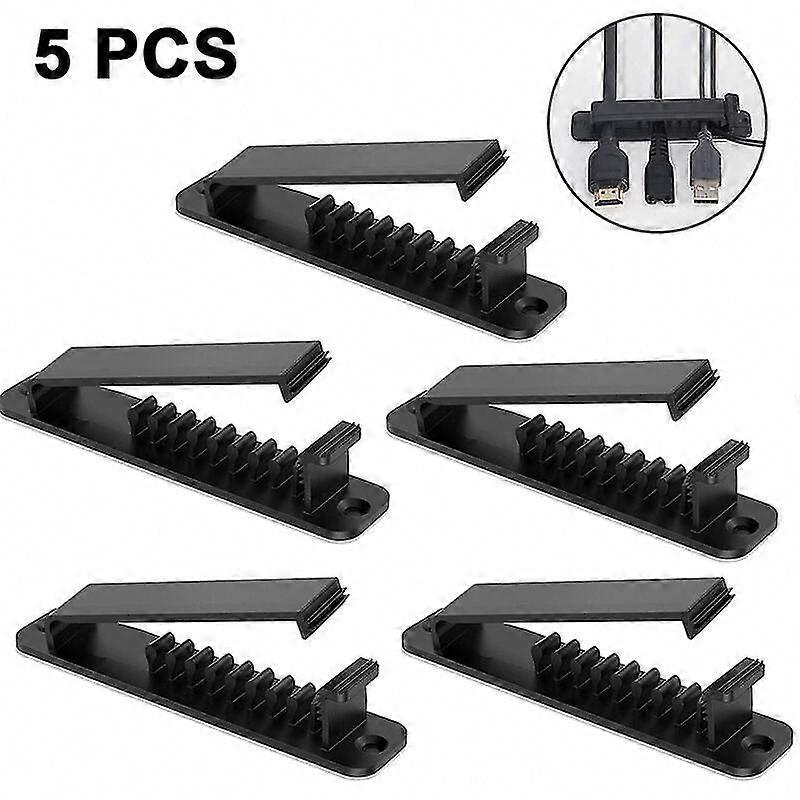 Cable Clips 5 Pack - Self Adhesive Cord Holders for Home Office Car Phone Charger Wire Management Black