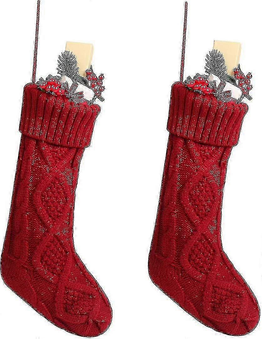 Cable Knit Stockings Kits Solid Color White Ivory Classic Decorations 46cm Set Of 2
