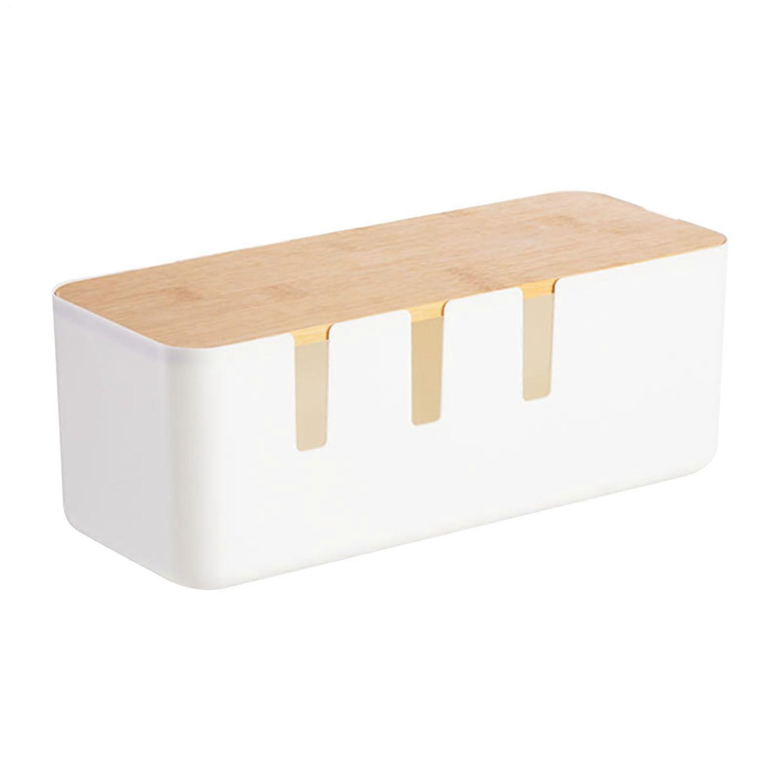 Cable Box Organizer Wire Storage Box Power Strip Organizer Cable Management Box with Wooden Lid