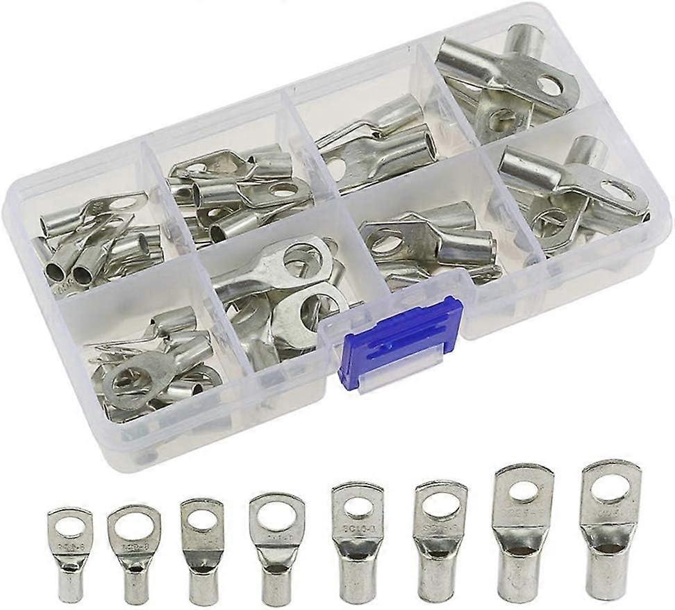 Cable Lug Crimp Connectors - 60pcs Tinned Copper Bolt Hole Electrical Lugs (6/10/16/25mm²)