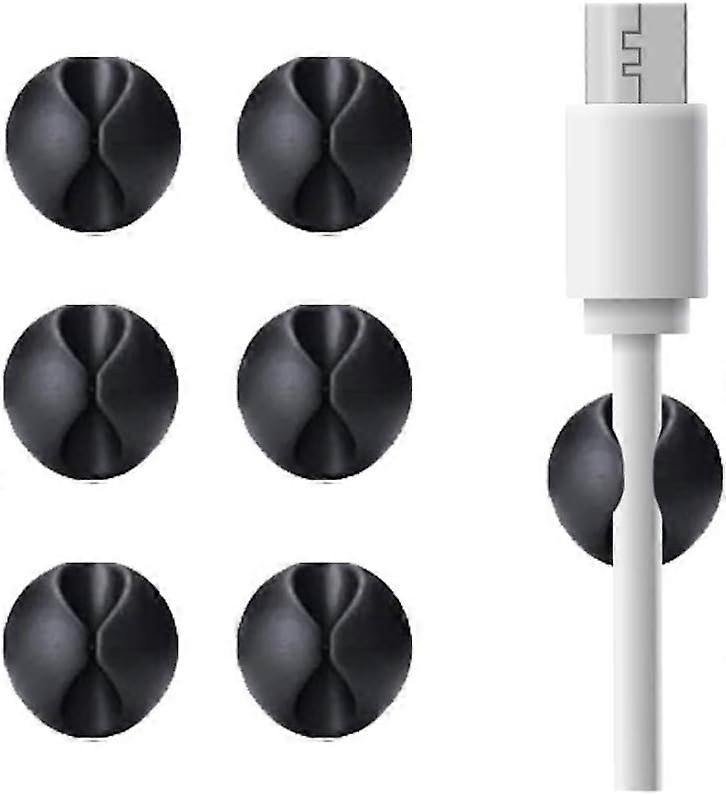6 Pack Cable clips : 6 Pcs of wire clips (4 middle size suitable for most computer and cell phone cables + 2 small size suitable for iphone cables with small ends) packaged in an amazing blister card, 1 slot. Color : black.Material : High quality Eco-friendly Silicone with strong 3M adhesiveMAKE YOUR DESK MORE ORGANIZED: Whenever you unplug your USB, HDMI, VGA, power, Ethernet, TV, headphones and chargers from your devices (phone, tablet, PC or laptop or other), the cables fall to earth. Our cable clips are there to keep these types of cables organized and set near you on your office.The wire clip can be easily used at work, at home, in the car to fix cables, pens, screwdrivers and other small thingsEASY TO USE: Peel the paper and stick with the 3M adhesive on any flat surface (wood, plastic, metal, glass, wall and others) . Press a few seconds. You can use it immediately, but highly recommanded after 24 hoursFEATURES OF SILICONE: Silicone is very advantageous compared to other materials like TPU, PVC, Rubber in terms of quality, security, durability and resistance to deformation