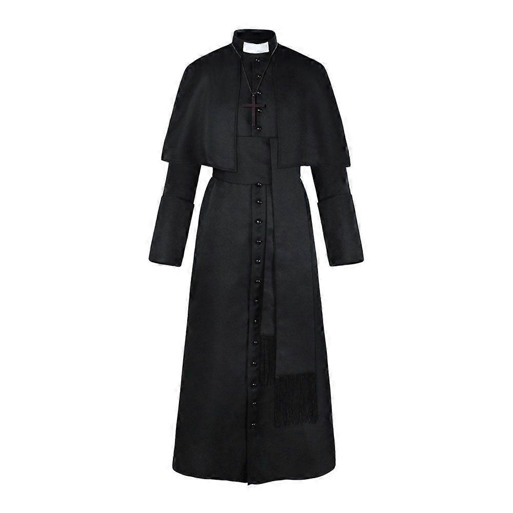 Long Red Priest Gown with Capelet and Cross Necklace Men's Cardinal Robe Costume