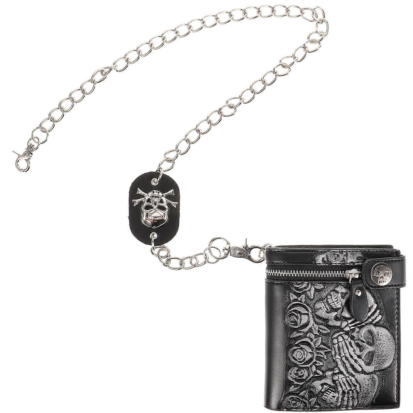 This small wallet is safe, practical and durable to be used for long term. You can store and organize cards, small makeup tool, proper size. Light weight, easy to carry, good for keeping your cards, bring you much more convenience when outdoor shopping, traveling, etc. With gothic theme design, skull and rose elements pattern, this wallet is decorative and unique. Features -Color:Multi -Material:Leather -Size:12.00X11.00X3.00cm/4.72X4.32X1.18in (Wallet) -Size:65.00X4.00X2.00cm/25.55X1.57X0.79in (Chain) - The zipper wallet is safe, practical and durable, can support for long term of using. - Leather wallet is good for storing your cards, money, compact size and light weight, portable to use, take, and store, - This wallet with punk theme design, with rose and skull pattern design, gothic and unique, decorative and fashionable. - Practical wallet uses zipper closure design, sturdy and useful, your things will not drop and lost easily. - Proper internal storing capacity, proper for when you are going out for shopping or traveling. Package list: 1 × Wallet with Chain