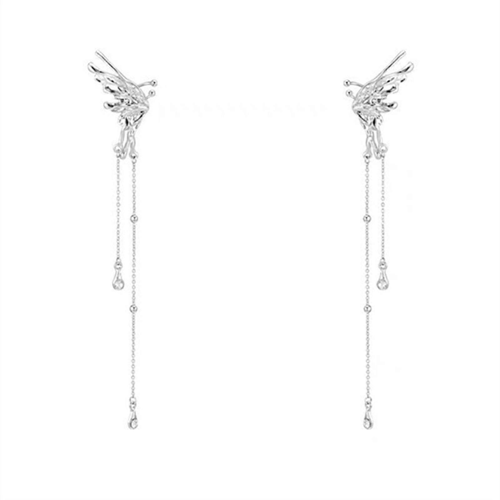 Gothic Elf Earcuffs Non Piercing Cartilage Climber Ear Wrapped Vintage Silver Stud Earrings Long Tassel Earrings Gift