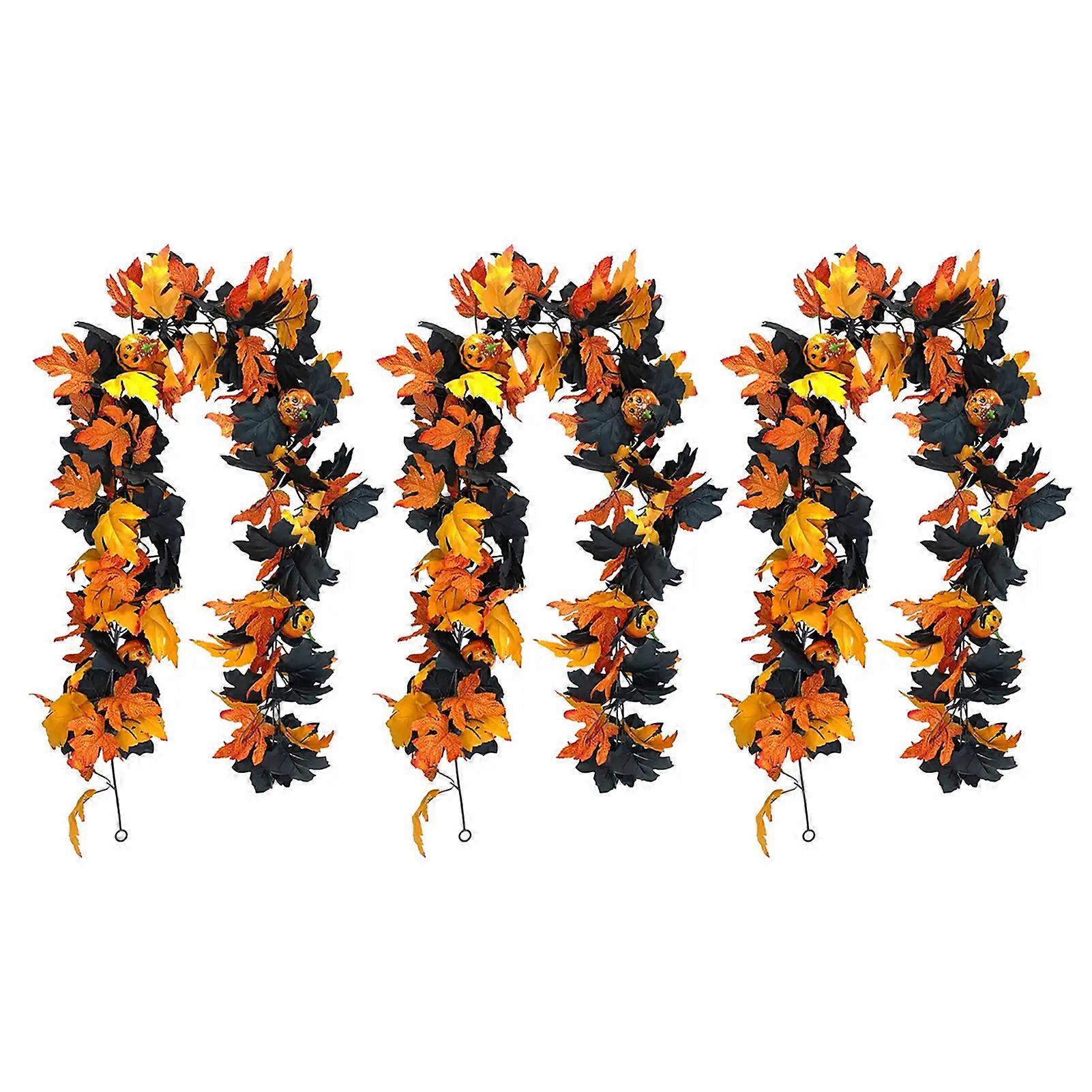 Gothic Maple Leaf Pumpkin-Vine with Spiders Accents 5.74ft Garland Decor With Artificial Maple Leaves Fireplace Decoration
