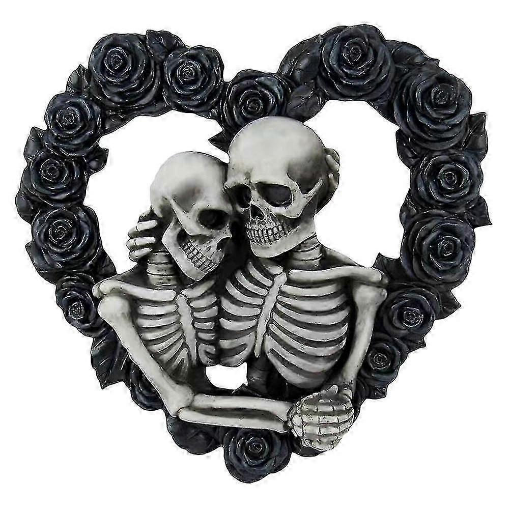 Gothic Skull Couple Door Decor Black Rose Wreath Decoration Heart-shaped Embracing Skeleton Lovers