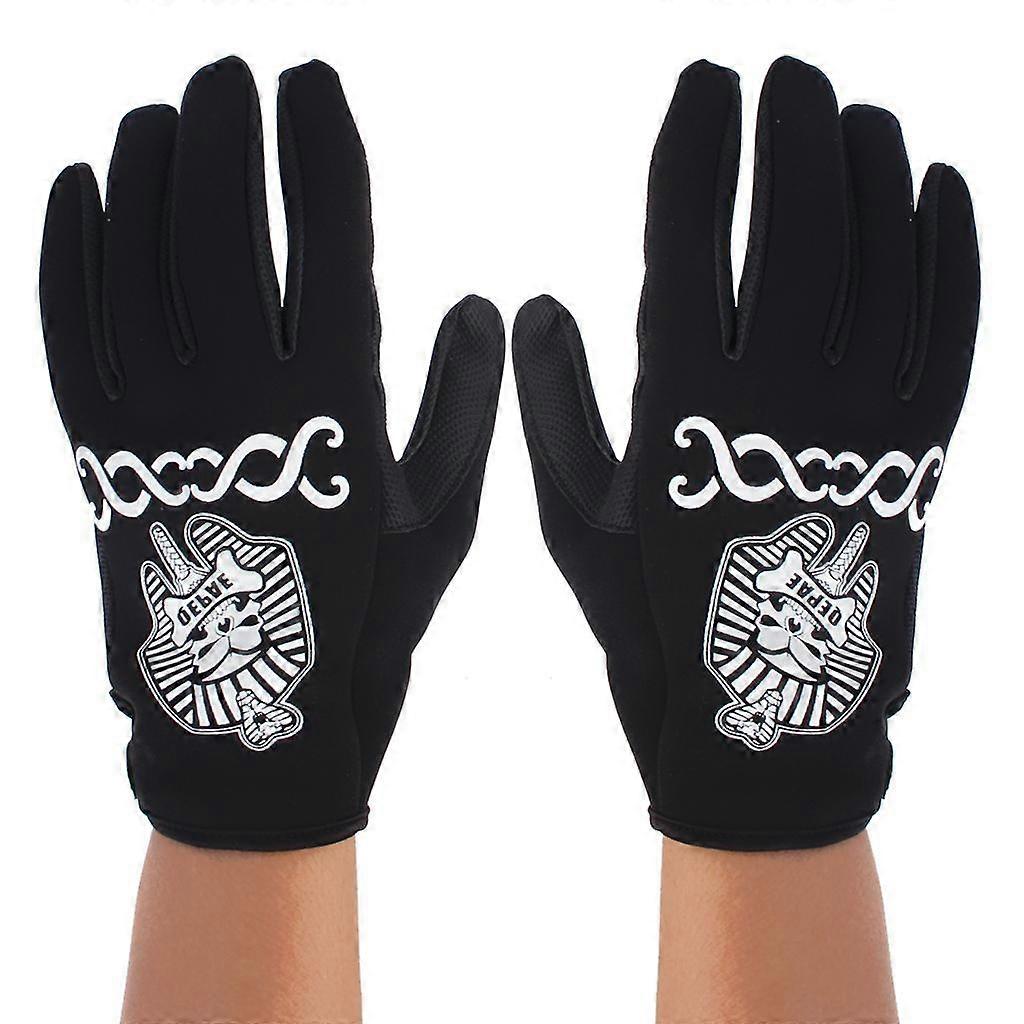 Gothic Skeleton Skull Pattern Full Finger Warm Bicycle Bike Sports Gloves Black + White XL