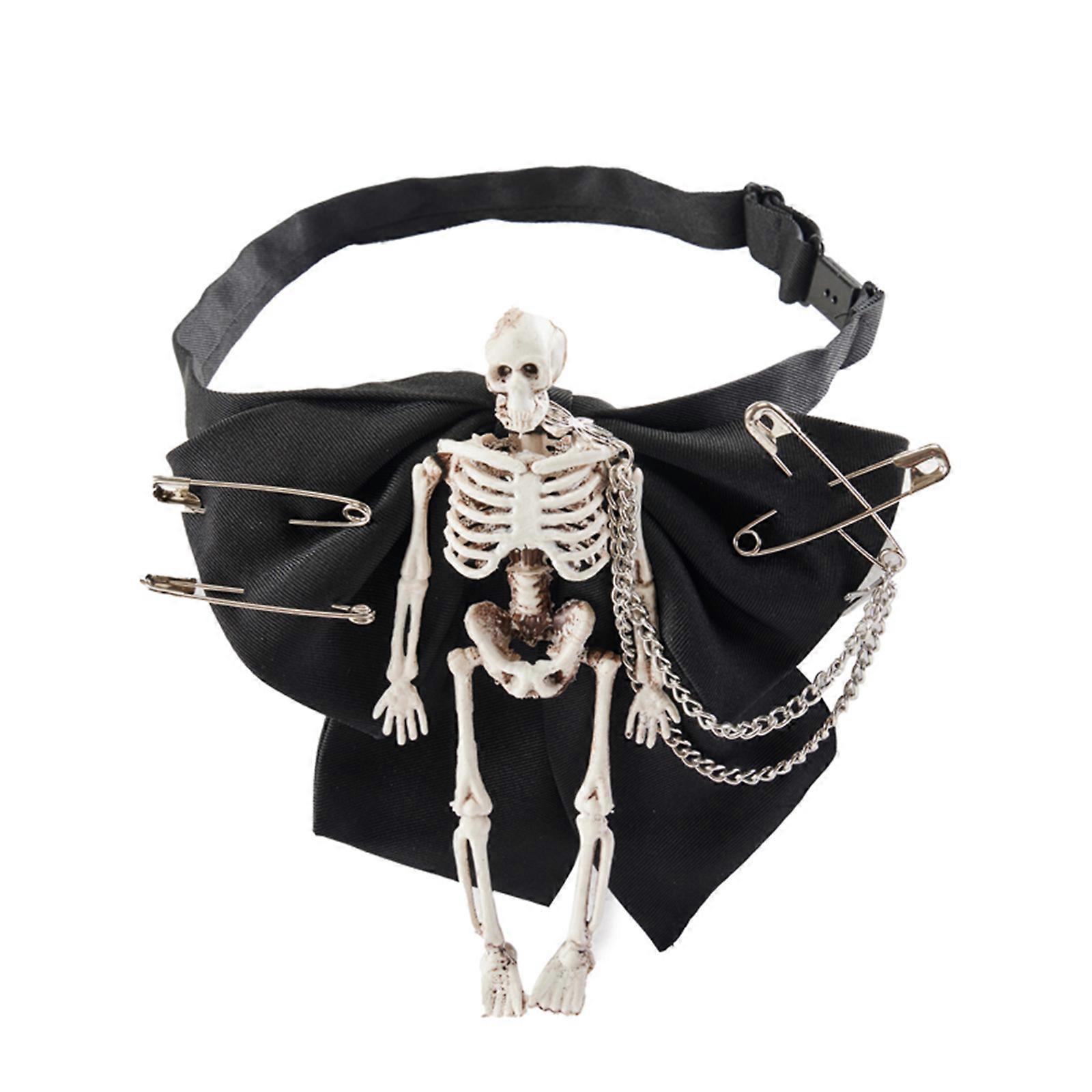 Gothic Skeleton Bowtie Vintage Punk Costume Metal Pin and Chain Bowknot Necktie Halloween Role Play Costume Party Gifts Black