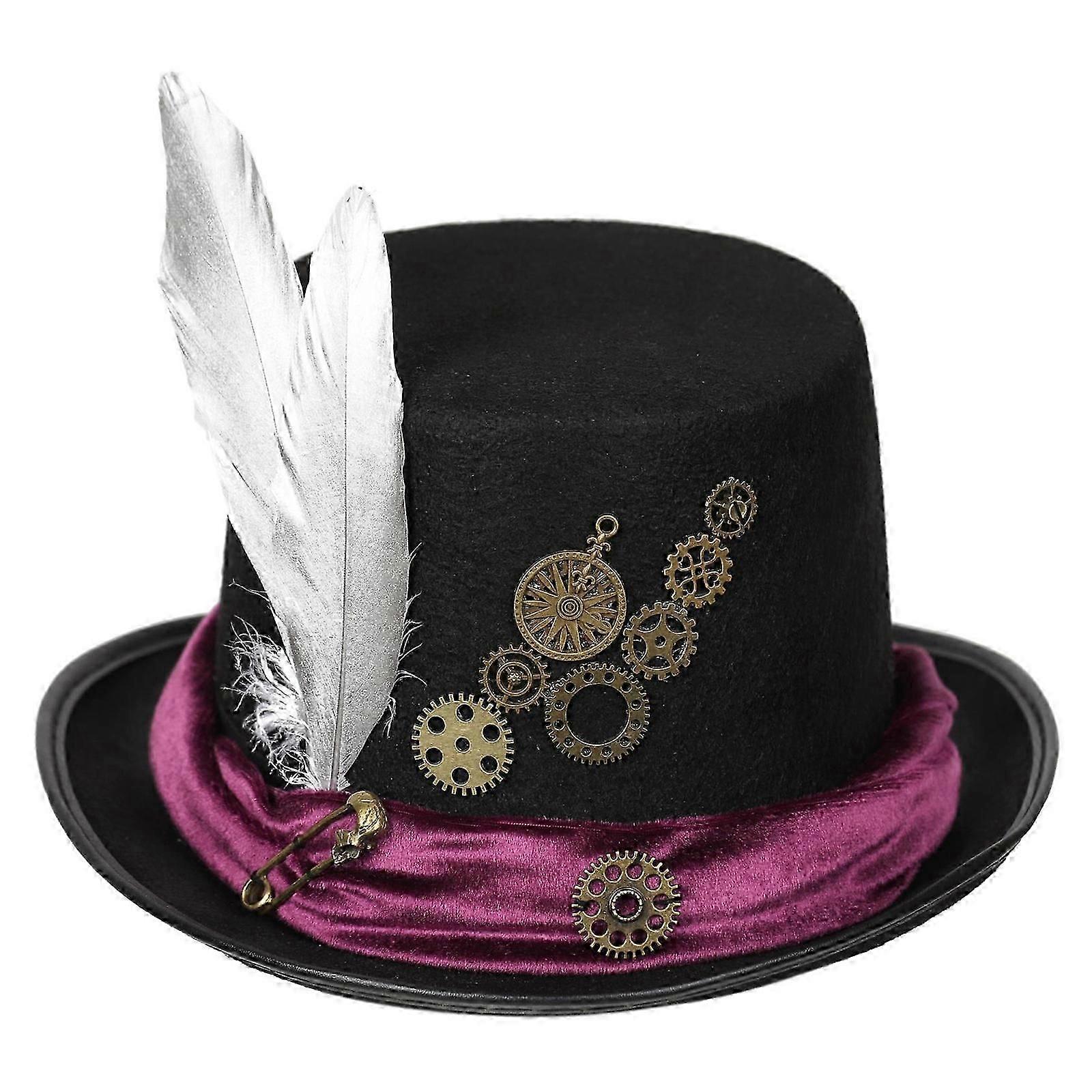 Gothics Top Hat Steampunk Hat Punk Style Magician Hat with Feathers Adult Women Men Cosplay Costume Halloween Accessory Blacka