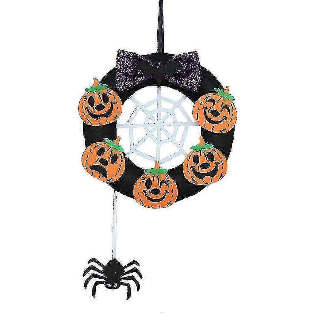 Gothic Halloween Wreath, Skull Pumpkin Decor, Horror Door Hanging, Spooky Wall Decoration With Bowknot