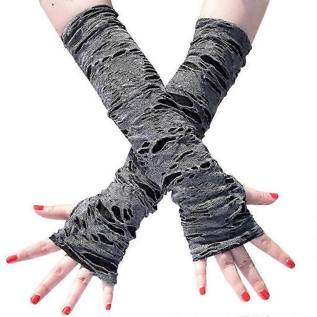 Gothic Fingerless Gloves Punk Ripped Sleeves Halloween Costume Accessory