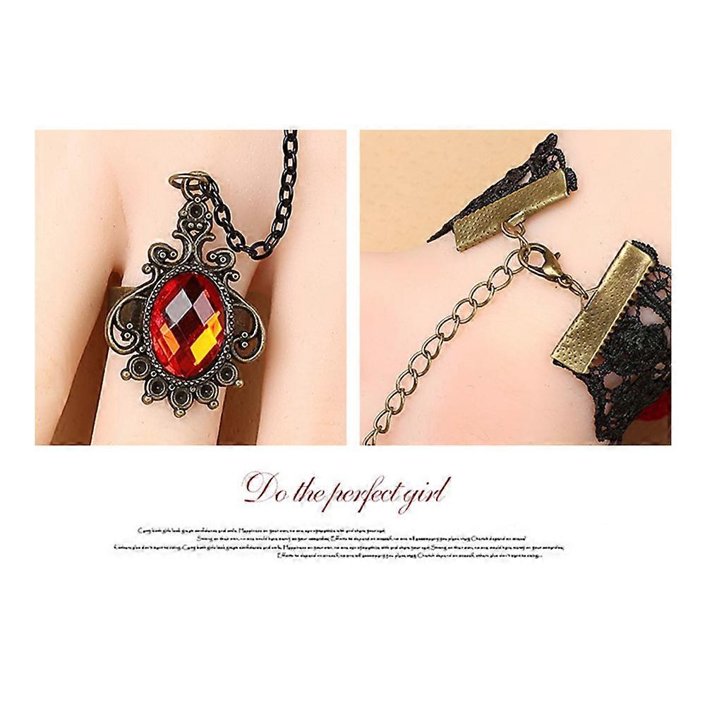 Gothic Lolita Retro Lace Crystal Bracelet with Ring Red Rose Flowers Lace Wristband Jewelry Anniversary Wearable 1Set