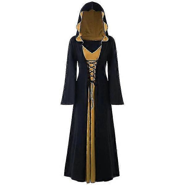 Gothic witch hooded cloak, women's dress, XL, black, khaki