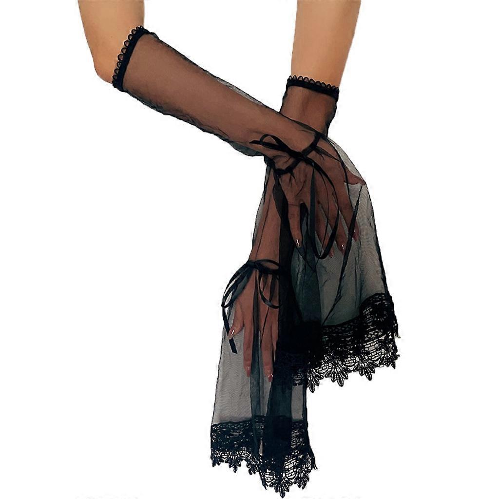 Gothic Bowknot Lace Sleeves 1920s Theme Party Flapper Gloves Decorative Sleeves Cuff Gloves Halloween Dress Up Accessory