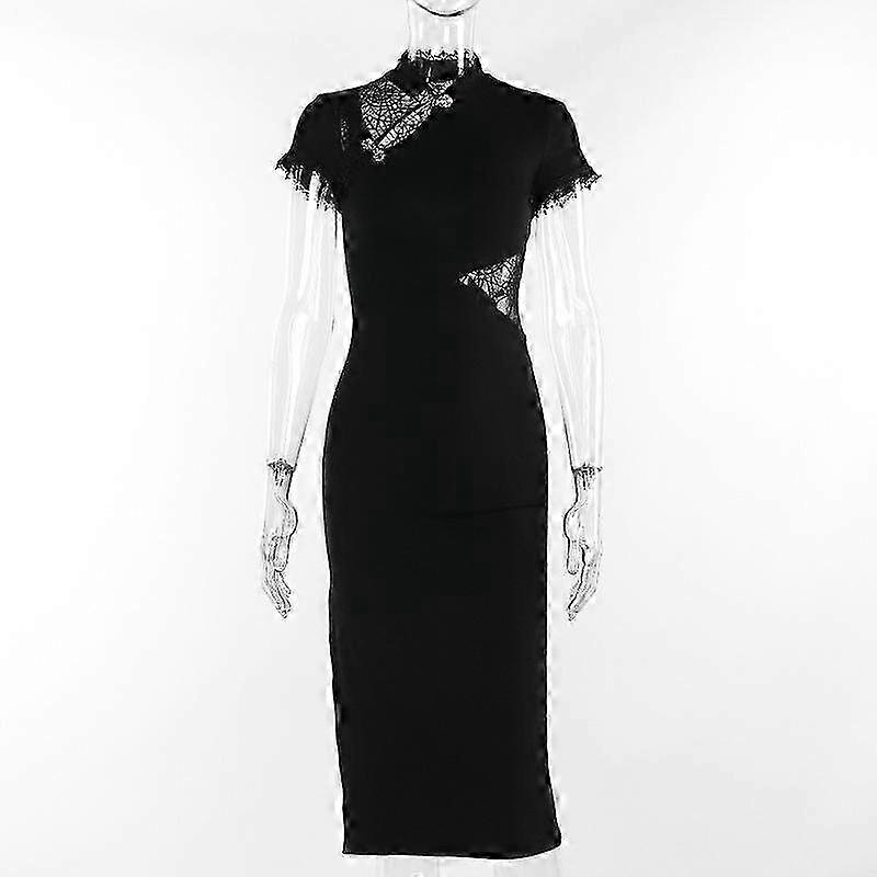 Goth Dark 90s Vintage Aesthetic Mesh Patchwork Dress Women Fairy Gothic Party Gown Sexy Split Hem Bodycon Dresses Slim Cheongsam