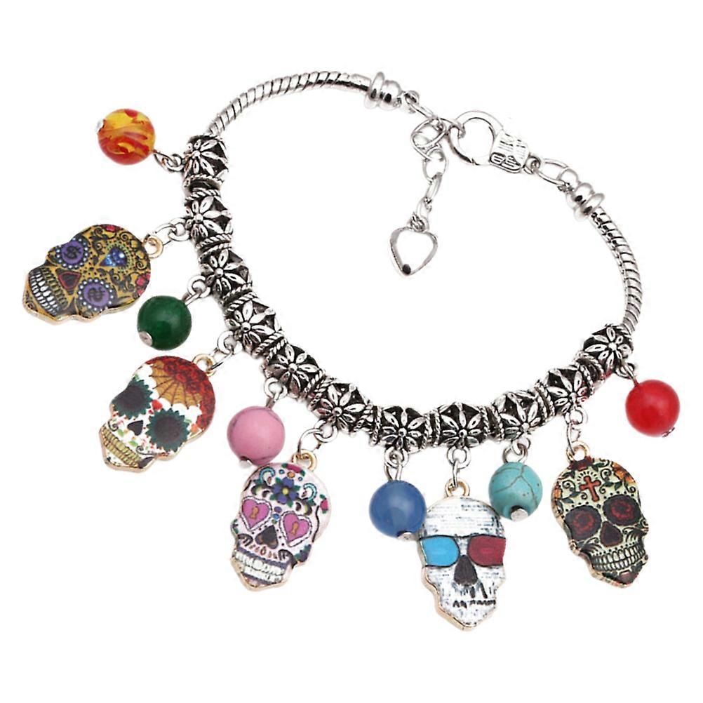 This bracelet is made of agate and alloy material, durable and lightweight. Designed with punk style and fine workmanship, perfect present choices for your friend, or yourself at birthday, party etc. You can wear it in many occasions, such as travel, shopping, party, daily life etc. Features -Color:Multi -Material:Agate, alloy -Size:23.00X4.00X1.00cm/9.04X1.57X0.39in -The bracelet is made of stable and reliable material for durable and use. - punk style bracelet, with both retro and trendy style. Unique and fashionable bracelet. -The overall design of this bracelet is stylish and distinctive to make you and cool. -This cool and punk style bracelet is suitable for women, and attractive. -The bracelet can be a present for birthday, Valentine's Day, Thanksgiving Day, graduation and any occasion. Package list: 1 x Skull Bracelet