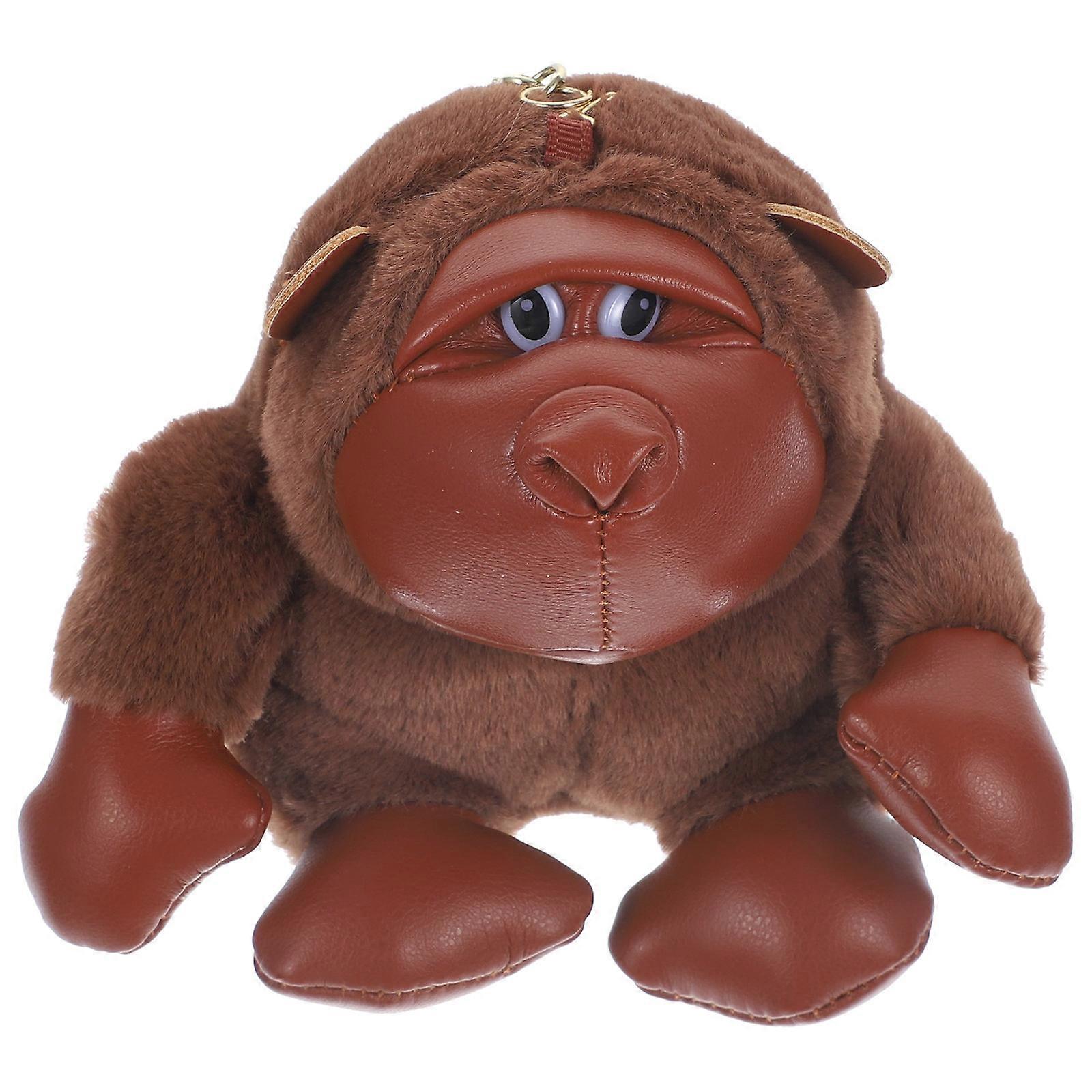 Gorilla Keychain Plush Pendant for Hanging Keys 2Pcs Brown Soft Decor