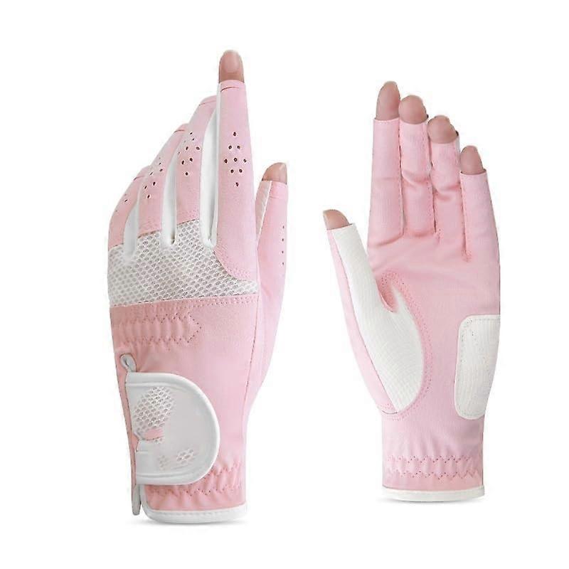 Golf Gloves 1 Pair Women Breathable Anti Slip Golf Gloves Women's Patchwork Sports Gloves Microfibre Mittens Golf Gloves Women 19 Pink