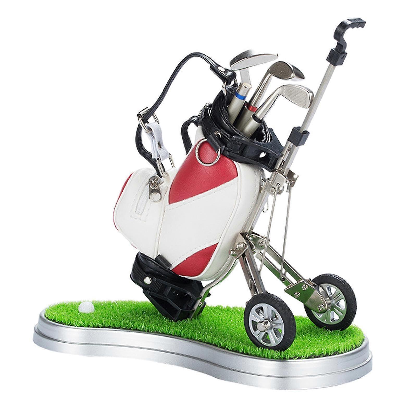 Golf Set, Mini Golf Club Holder with Trolley, 3 Golf Club Pencils Unique Golf Souvenirs