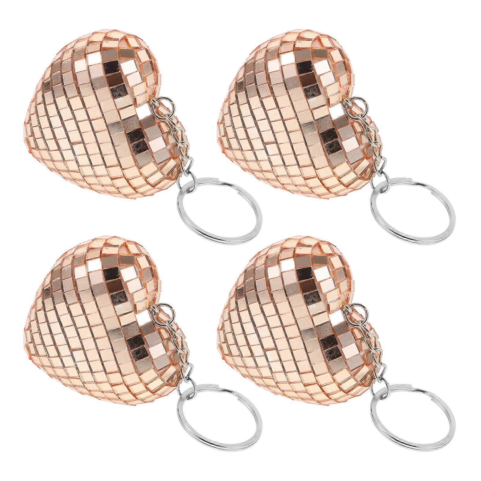 Golden Disco Ball Keychain Creative Heart Shaped Mirror Pendant for Decoration and Party Favors 4pcs