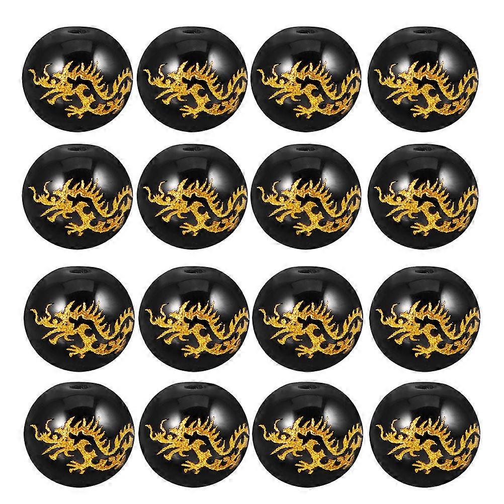 Golden Dragon Design Agate Beads for DIY Jewelry Making Black with Engraved Patterns 48pcs