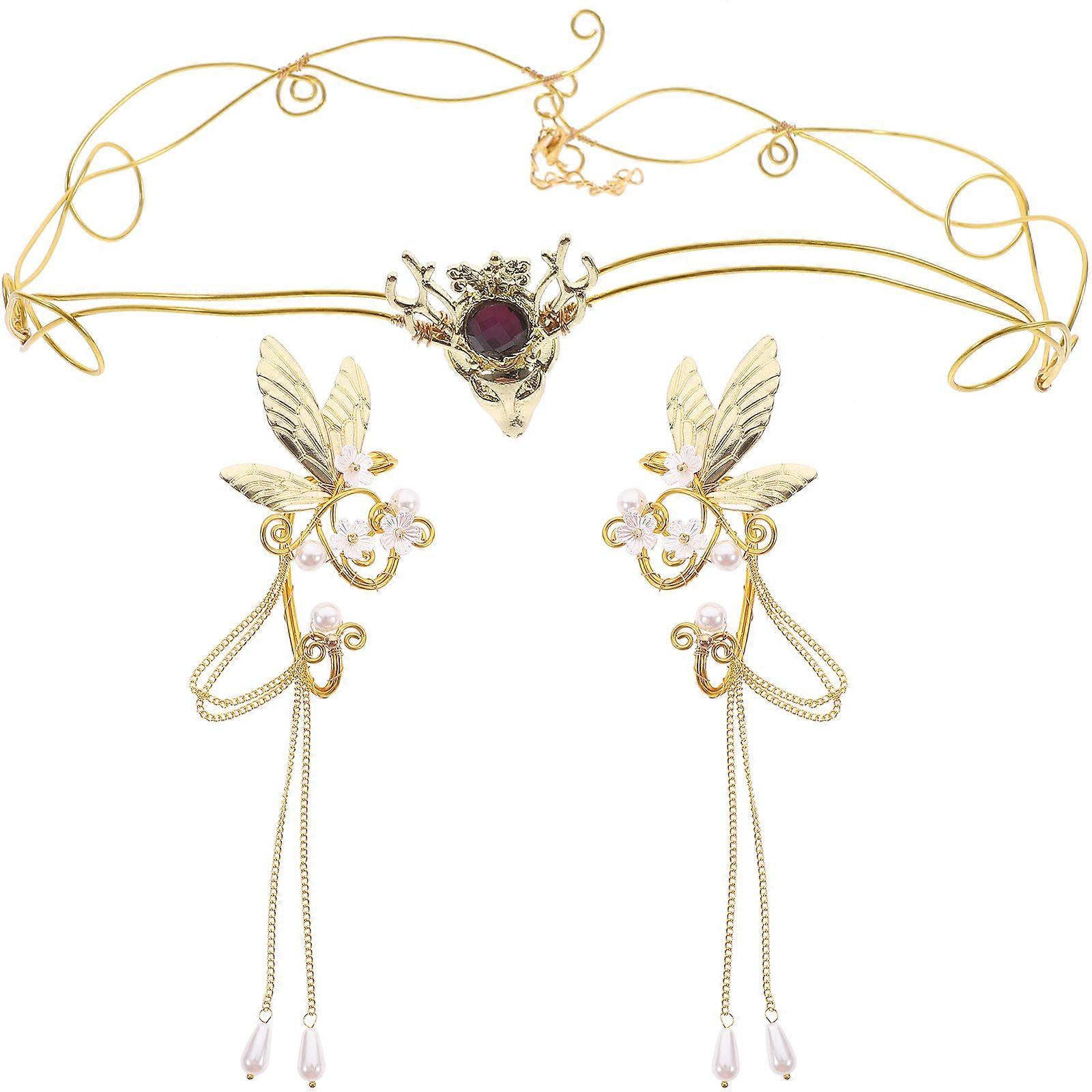 Golden NonPiercing Tassel Ear Cuff Earrings and crown for Women Teen Girls Decor 1 Set
