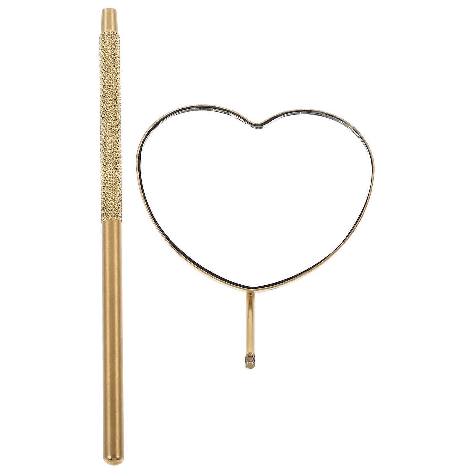 Golden Heart Shaped Handheld Eyelash Mirror with Stainless Steel Handle for Makeup Use 6.5 Inches