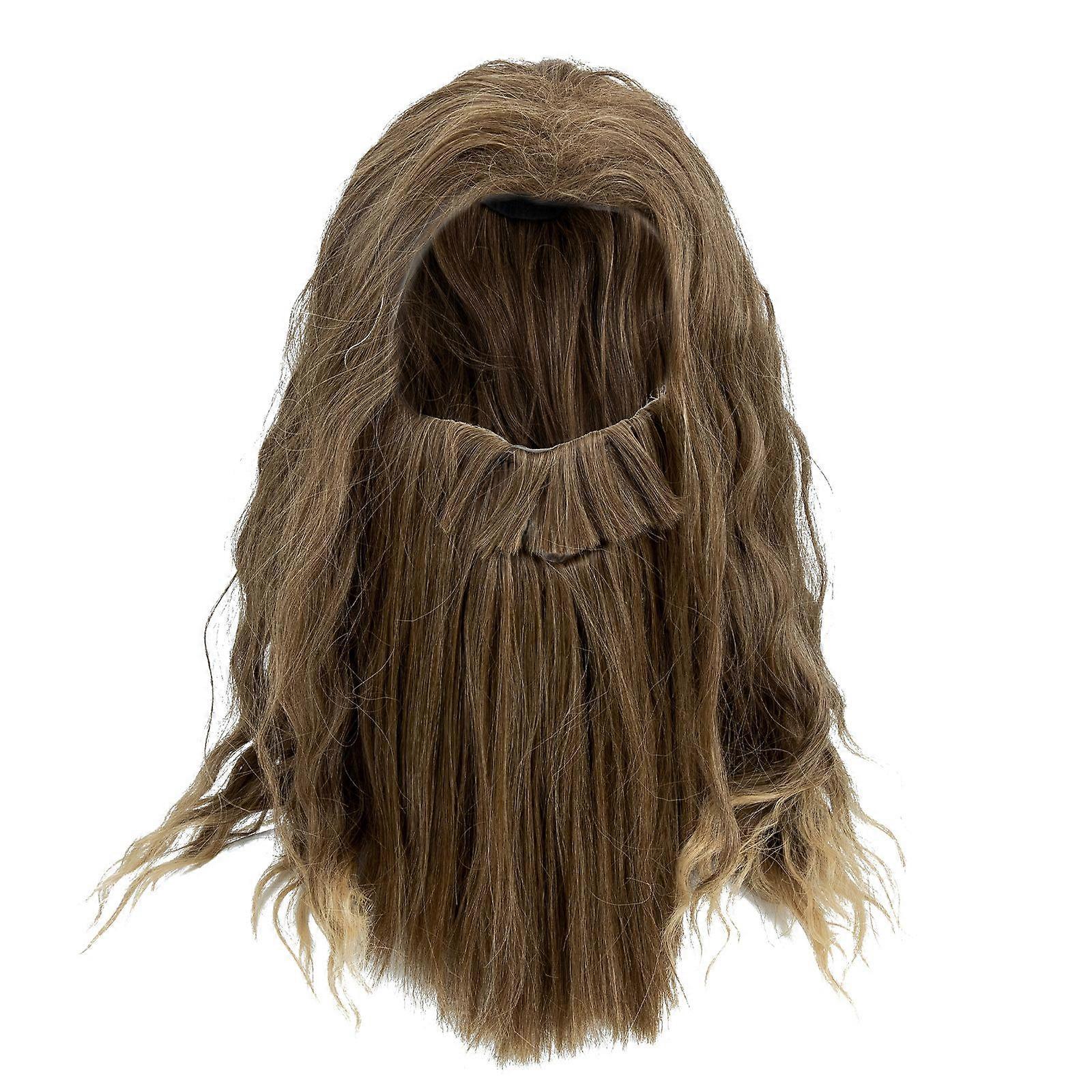 Golden Brown Curly Wig and Beard Cosplay Wig Men Wig Party Costume Accessory