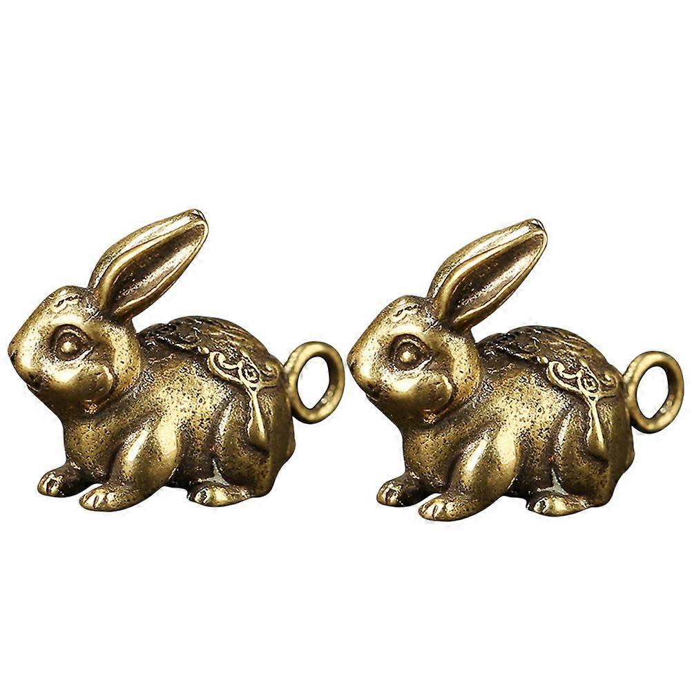 Golden Brass Rabbit Charms Keychain Pendant for Decoration with Chinese Style Design Lightweight and Portable 2Pcs