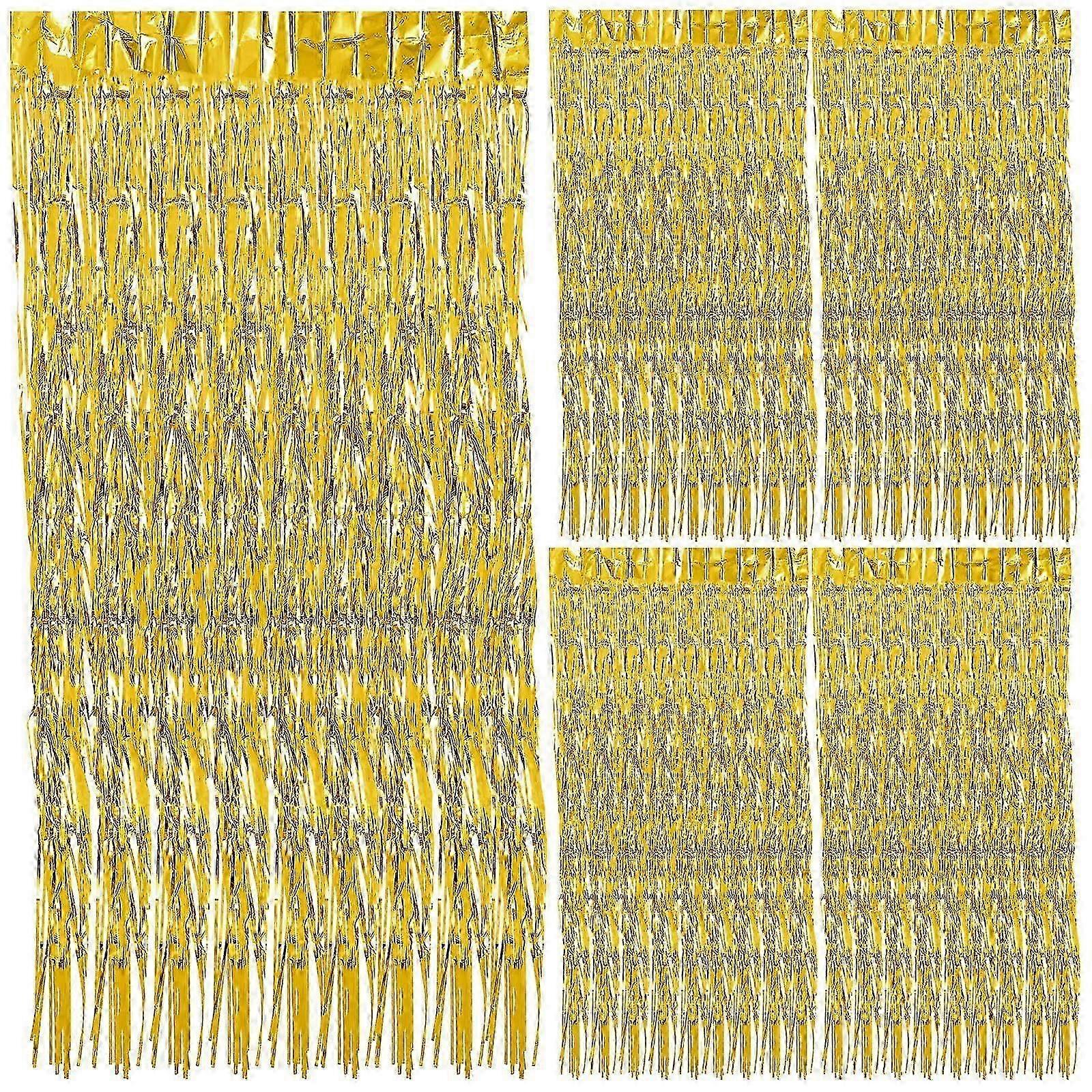Golden Fringe Backdrop Wedding Foil Fringe Curtain Background Arrangement Plastic Material 200X100X0.1CM 5Pcs