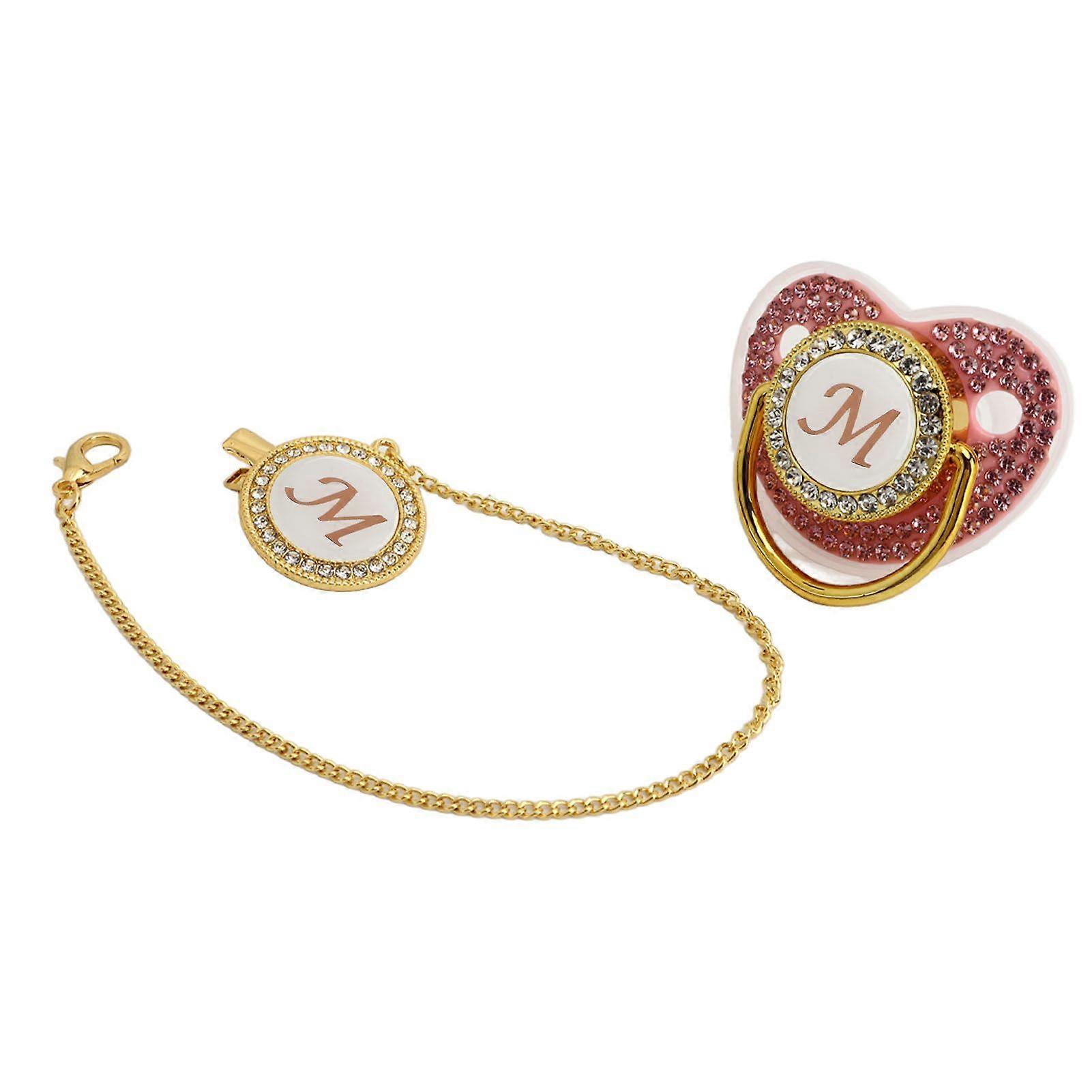 Golden Baby Pacifier Covered Rhinestones Curved Design Silicone Pacifier for Baby Milk Powder Feeding Letter M