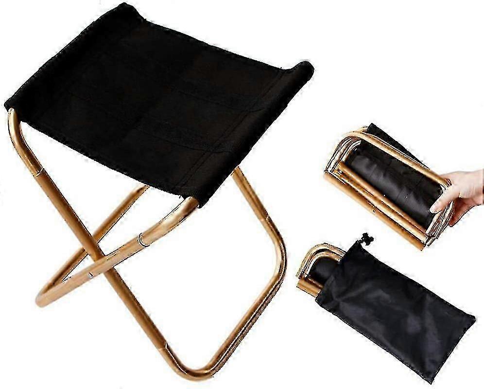 Golden Mini Portable Folding Chair With Bag, Aluminium Compact Ultralight Folding Stool Seat With Carry Bag